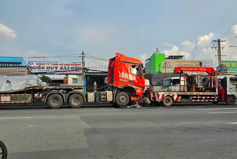 Theo thông tin ban đầu, khoảng 14 giờ 45 phút cùng ngày, xe đầu kéo biển số 50H-079… kéo theo rơ-moóc chở sắt, khi lưu thông đến chân dốc cầu vượt Gò Mây (hướng từ cầu vượt An Sương về vòng xoay An Lạc), bất ngờ thắng gấp để tránh va chạm với phương tiện phía trước.