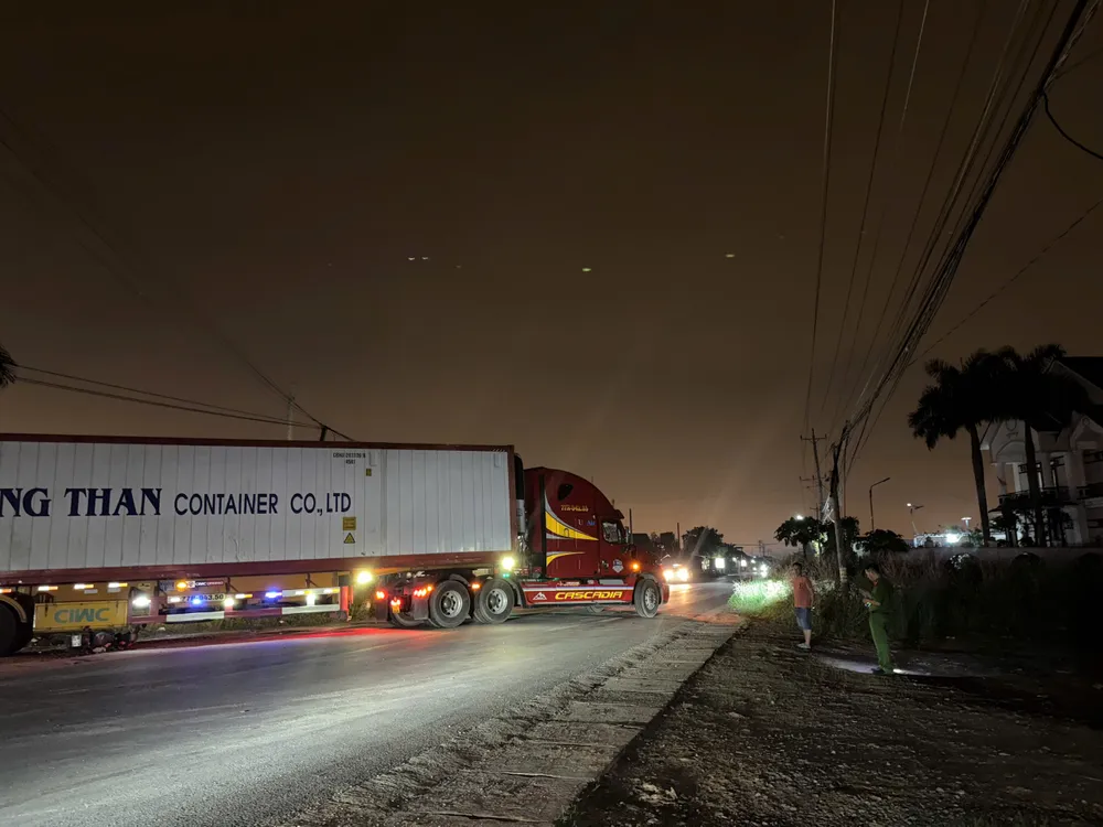 Thông tin ban đầu, khoảng 19 giờ ngày 6-11, trên tuyến đường ĐT 719, đoạn qua thôn Hiệp Lễ, xã Tân Thành, xe đầu kéo container biển số 77H-042.86 do lái xe ĐVQ (ngụ Gia Lai) điều khiển đang lùi vào vựa thanh long LK thì xảy ra tai nạn giao thông.