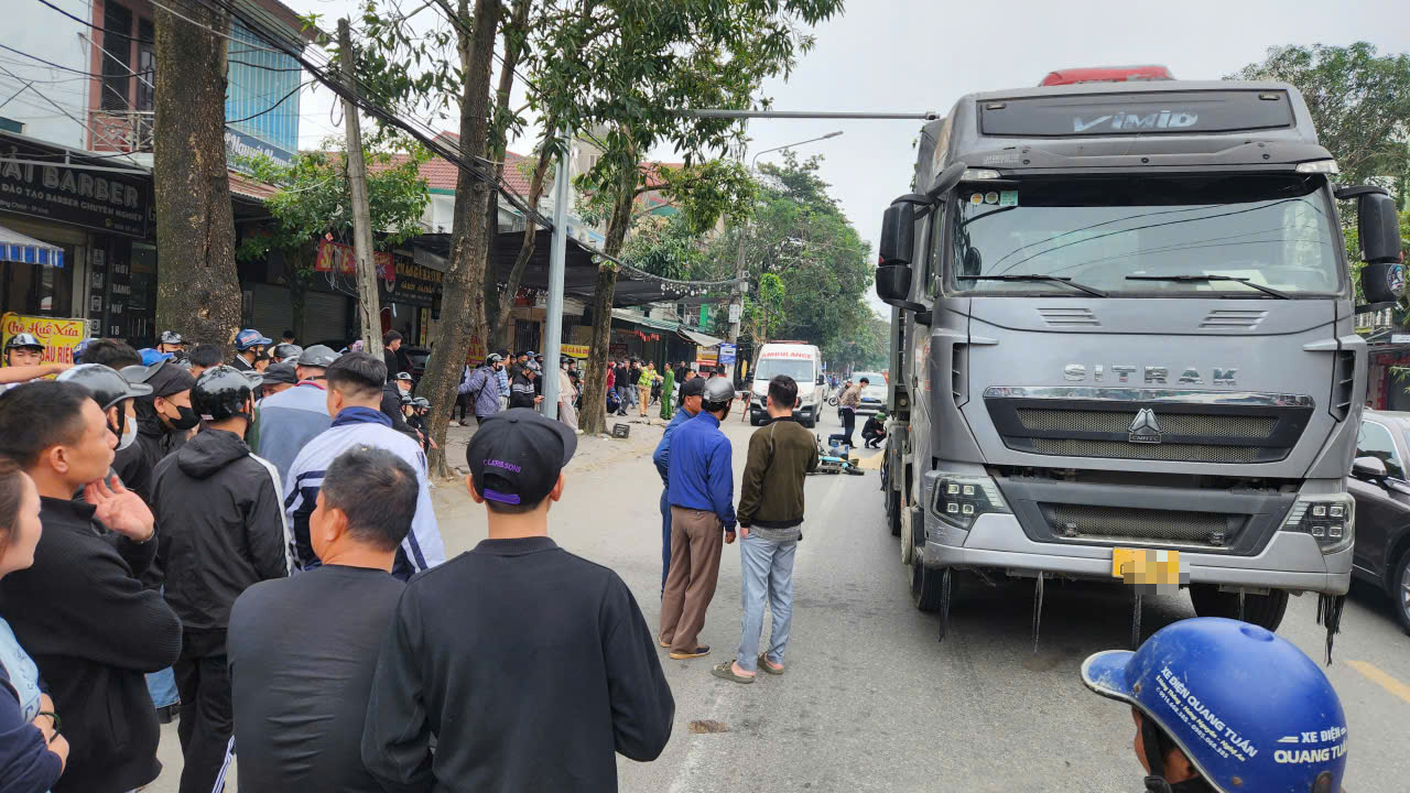 Vụ tai nạn khiến người đàn ông đi xe đạp điện ngã xuống đường, bị bánh xe của rơ-moóc chèn qua người, tử vong tại chỗ.