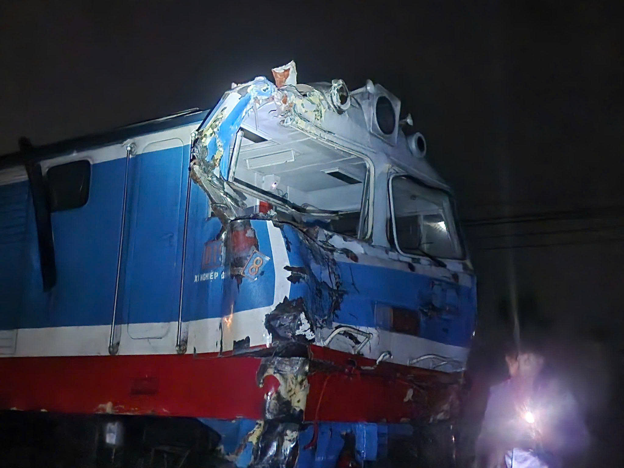 Phần đầu tàu hỏa SE8 bị hư hỏng nặng