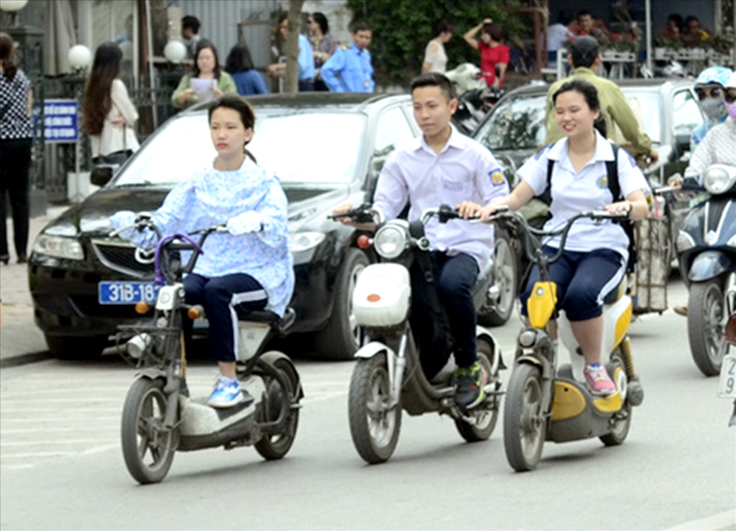 Về mũ bảo hiểm: Người điều khiển xe điện và người ngồi trên xe đều phải đội mũ bảo hiểm và cài quai đúng cách, đây là yêu cầu bắt buộc theo Điều 31 Luật Giao thông đường bộ 2008.