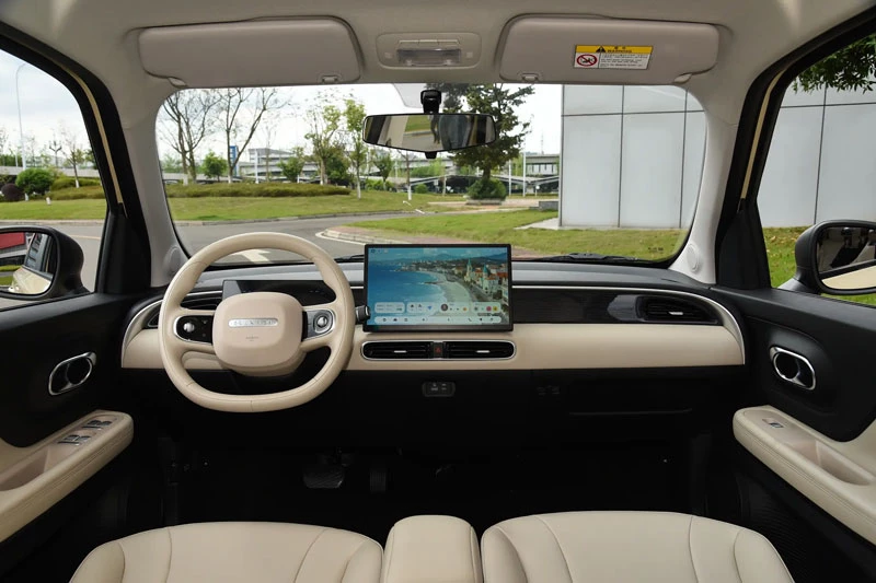 Không gian nội thất của xe được thiết kế theo hướng tối giản nhưng ấm cúng, sử dụng tông màu be chủ đạo nhằm tạo cảm giác rộng rãi và dễ chịu. Vật liệu hoàn thiện hướng đến tính thực dụng với khả năng chống bám bẩn và dễ vệ sinh, phù hợp cho nhu cầu sử dụng gia đình. Xe được trang bị hệ thống màn hình kép gồm bảng đồng hồ 8,8 inch và màn hình trung tâm 12,8 inch, mang lại trải nghiệm công nghệ cơ bản nhưng vẫn đáp ứng tốt nhu cầu sử dụng hàng ngày.