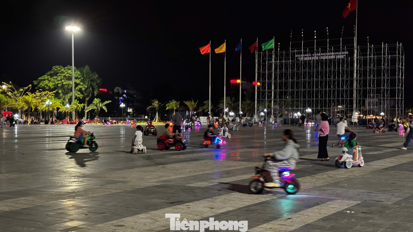 Tuy nhiên, trong khi dự án chưa được bàn giao, khuôn viên quảng trường lại đang bị “chiếm dụng” một cách tự phát. Vào mỗi buổi tối, nơi đây trở nên hỗn loạn bởi hoạt động cho thuê xe điện mini, xe máy điện và các hàng quán bày bán tràn lan. Dưới biển cấm là cả trăm xe máy leo lên đậu đỗ khắp khuôn viên quảng trường