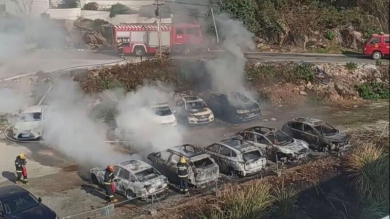 Vụ cháy khiến không chỉ Avatr 06 bốc cháy mà còn thiêu rụi toàn bộ dãy xe "xấu số" đậu trong bãi. Ảnh: CarnewsChina.