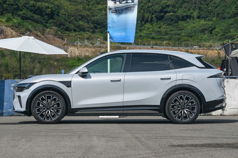 Zeekr 7X 2026 sở hữu ngoại thất mang phong cách thể thao hiện đại, kết hợp tỷ lệ vàng 0,618 giúp thân xe cân đối và cuốn hút hơn. Thiết kế phần đầu xe gọn gàng, cụm đèn pha sắc nét kết hợp dải đèn hỗ trợ người lái màu xanh lam được bố trí ở cả trước, sau và dưới gương chiếu hậu, mang lại dấu ấn nhận diện đặc trưng.
