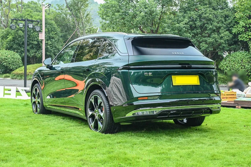 Phần đuôi xe được làm mới với các đường nét năng động, gợi cảm giác mạnh mẽ và đậm chất tương lai. Kích thước tổng thể của Zeekr 7X 2026 lần lượt là 4.825x1.925x1.650 mm và chiều dài cơ sở 2.925 mm. Bán kính quay vòng tối thiểu chỉ 5,8 m. Bộ la-zăng đường kính 19 inch.