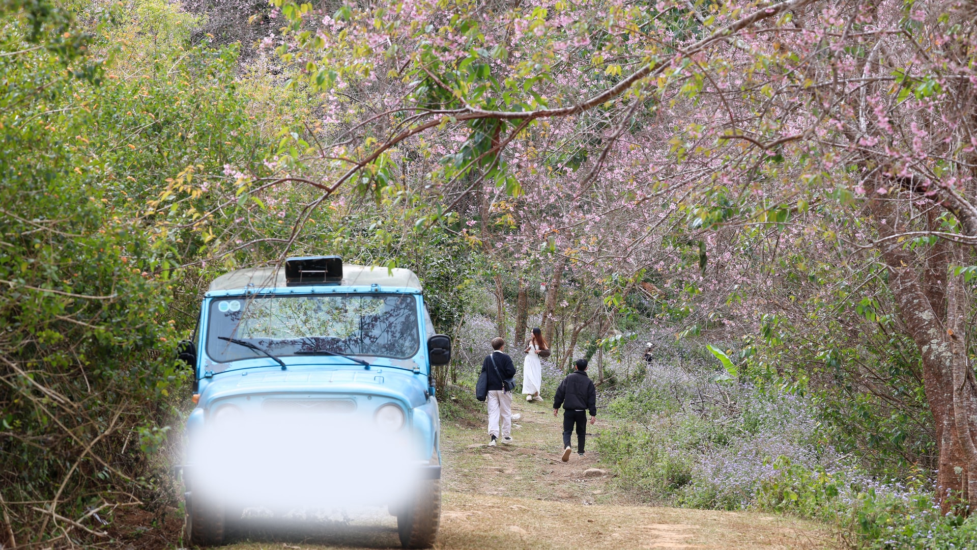 Những ngày gần đây, hoa mai anh đào nở rộ biến khu vực Mộng Đào Nguyên nằm dưới chân núi Lang Biang thành điểm thu hút hàng ngàn lượt khách. Để lên được khu rừng hoa, du khách phải chinh phục cung đường rừng hiểm trở dài hơn 3 km từ chân đồi lên đỉnh núi. Do đường đi dốc đứng, lởm chởm đá từ chân đồi lên, một số người dân địa phương đã hình thành loại hình dịch vụ xe jeep chở khách.