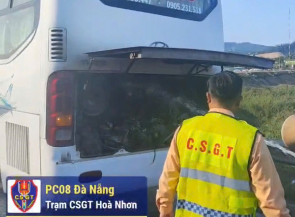 Cụ thể, khoảng 15h40 cùng ngày, trong lúc làm nhiệm vụ tại khu vực giao lộ quốc lộ 14B và cao tốc Đà Nẵng – Quảng Ngãi, tổ công tác của Trạm CSGT Hòa Nhơn phát hiện một xe khách 50 chỗ chạy tuyến Quy Nhơn (cũ) – Nghệ An bất ngờ bốc cháy ở phần đuôi xe. Thời điểm xảy ra sự cố, trên xe có 39 người, trong đó có nhiều phụ nữ và trẻ em.
