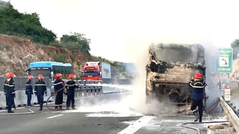 Nhận tin báo, Đội cảnh sát giao thông đường bộ cao tốc số 6 có mặt tại hiện trường, phối hợp Công an xã Nam Cam Ranh và đơn vị chức năng hỗ trợ chữa cháy, bảo vệ, điều tiết giao thông.