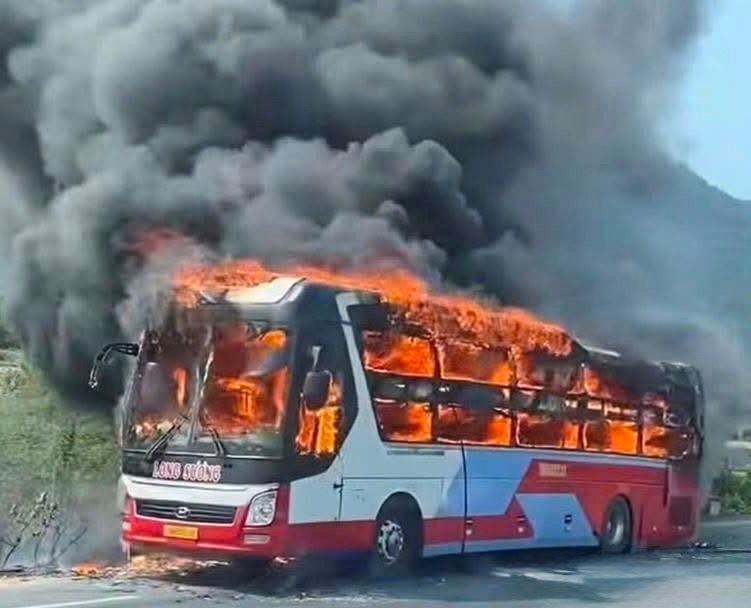 Dù được khống chế sau đó, chiếc xe khách đã bị thiêu rụi hoàn toàn, chỉ còn trơ khung. Rất may, vụ việc không gây thiệt hại về người.