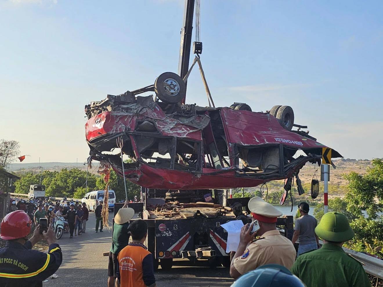 "Theo thông tin tôi nhận được là có tổng cộng 18 người trên xe gặp nạn. Hiện tại đã có 4 người chết, 11 người bị thương. Lực lượng chức năng đang cẩu xe bị nạn lên để tìm kiếm những người bị nạn khác" - ông Tùng nói.