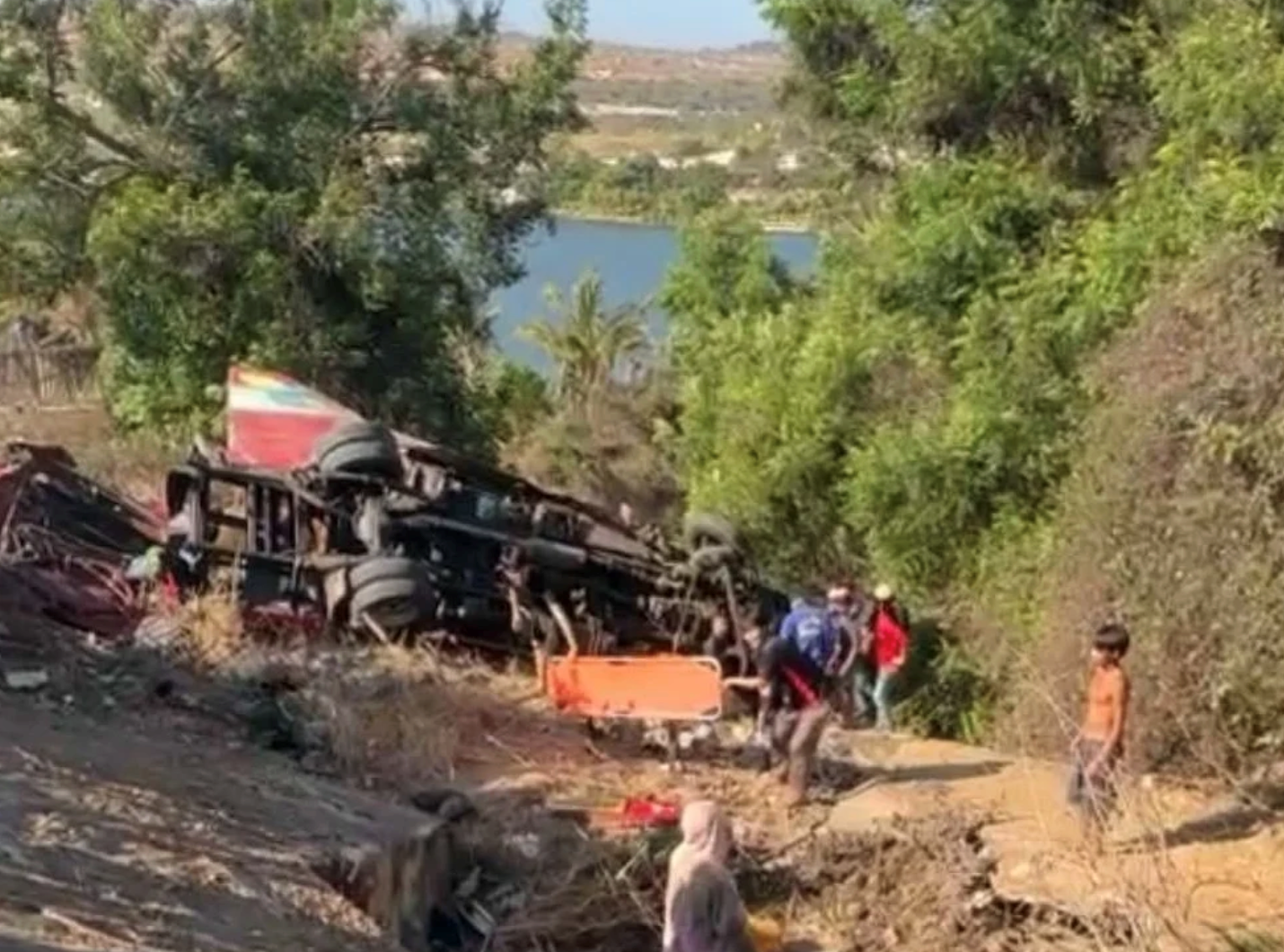 Hiện trường vụ tai nạn cho thấy xe khách bị hư hỏng nặng, biến dạng. Người dân địa phương cùng lực lượng chức năng đã nhanh chóng tiếp cận hiện trường để đưa các nạn nhân bị thương đi cấp cứu.