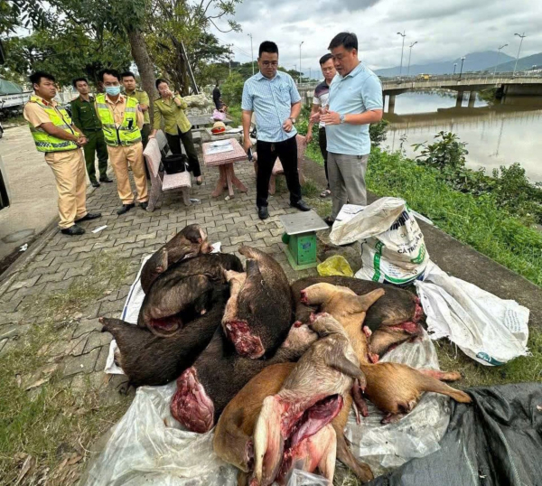 Qua kiểm tra, lực lượng chức năng phát hiện trên xe nhiều thùng xốp, bao tải chứa thịt động vật đông lạnh, gồm: 11 cá thể cầy (nghi là cầy mực, thuộc nhóm động vật rừng nguy cấp, quý, hiếm); 6 cá thể động vật đông lạnh không đầu, không chân, lông màu đen (nghi là heo rừng); 3 cá thể động vật đông lạnh không đầu, không chân, lông màu vàng, chưa xác định được chủng loài. Tài xế không xuất trình được giấy tờ chứng minh nguồn gốc hợp pháp của số hàng hóa trên.