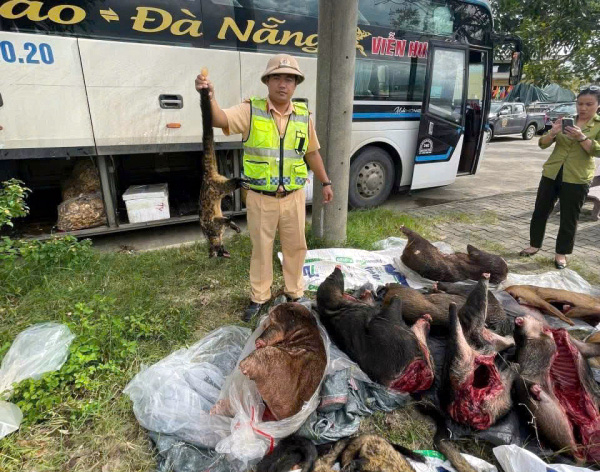 Lực lượng chức năng phát hiện xe khách vận chuyển nhiều thùng xốp, bao tải chứa thịt động vật hoang dã (thuộc nhóm động vật rừng nguy cấp, quý, hiếm) không có nguồn gốc hợp pháp.