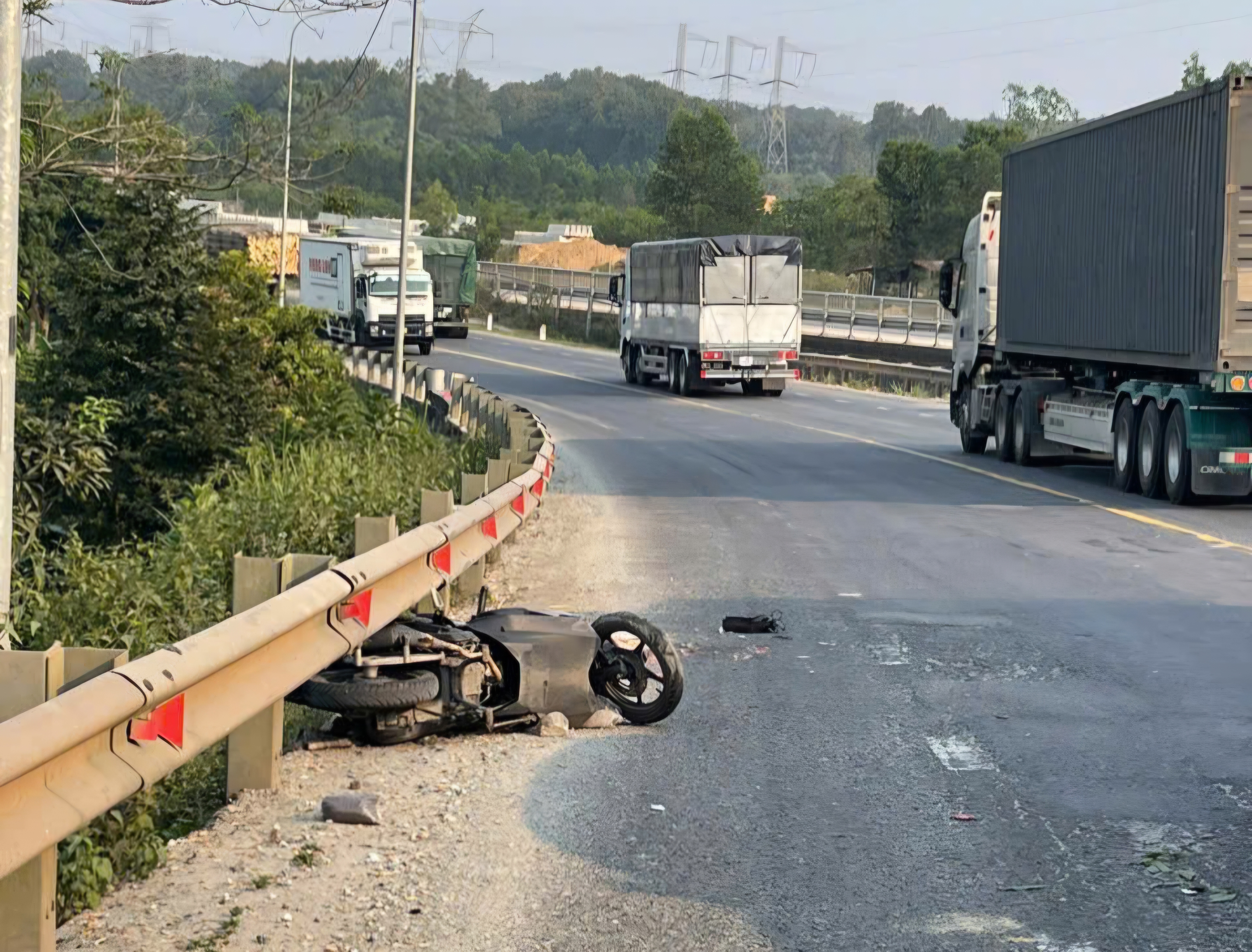 Qua xác minh ban đầu, trong lúc xe ô tô đầu kéo đang lên dốc, ôm cua phía tay phải thì xe máy vượt từ sau lên trước phía bên tay phải, va quẹt vào ô tô gây tai nạn.