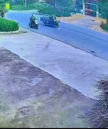 Do sự cố xảy ra bất ngờ, cả tài xế lái xe máy điện lẫn tài xế xe ba gác đều không kịp phản ứng. Do đó, 2 xe đã tông trúng 2 con chó thả rông và ngã ra đường cùng lúc.