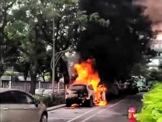 Mặc dù lực lượng bảo vệ cùng người dân đã nỗ lực khống chế ngọn lửa ban đầu, nhưng đám cháy bùng phát quá mạnh, không thể dập tắt. Ngọn lửa đã cháy lan và gây cháy xém sang phần đuôi của một chiếc ô tô khác đậu phía trước.