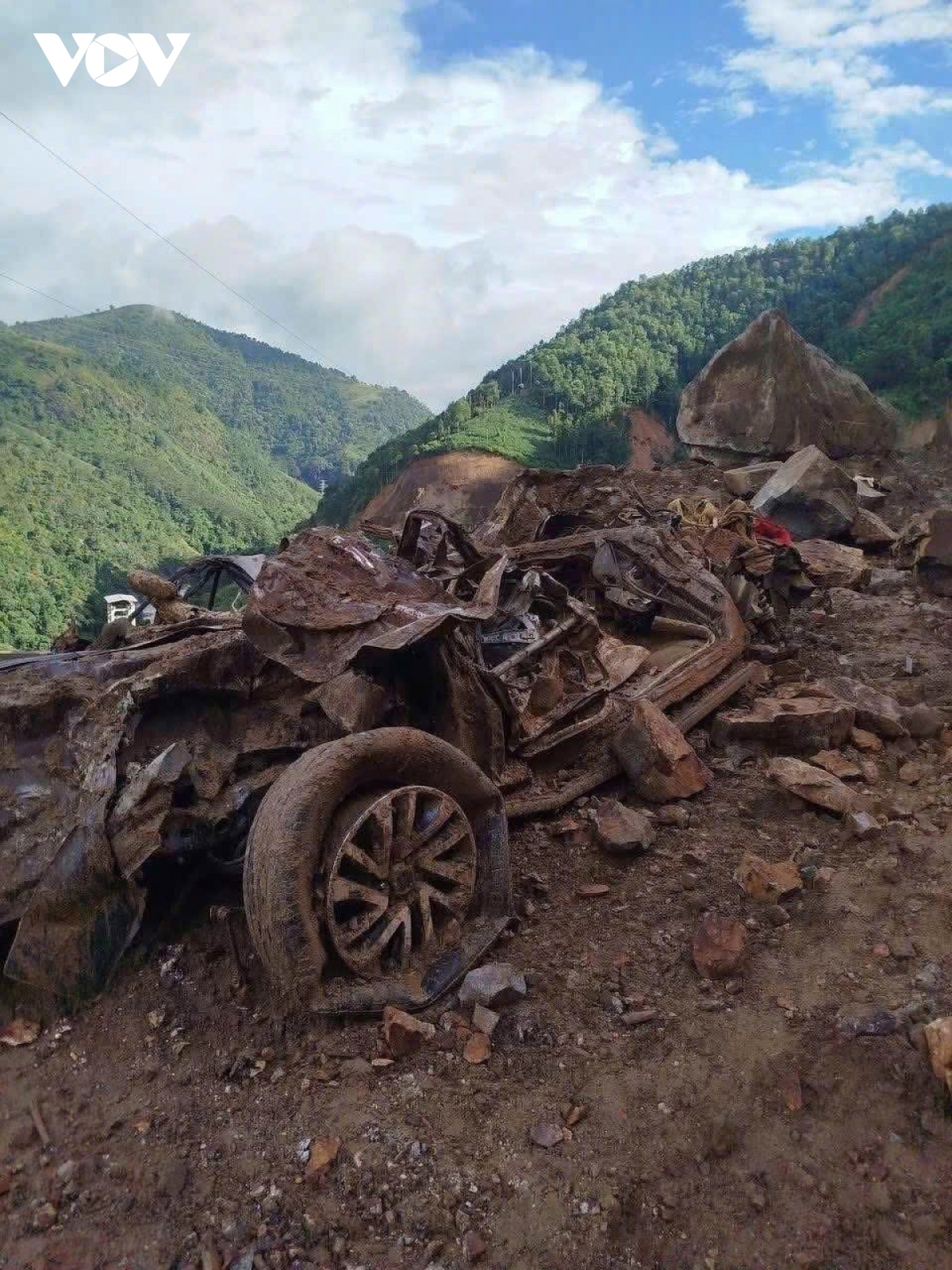 Khu vực sạt lở rất hiểm trở gây khó khăn cho công tác tìm kiếm