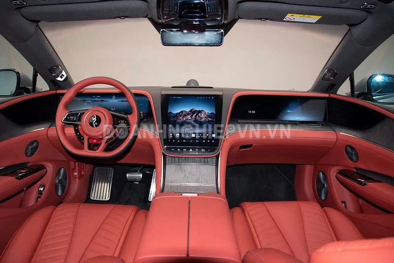 Bên trong cabin, nội thất Yangwang U7 được thiết kế theo phong cách bảng điều khiển đối xứng, mang lại cảm giác cân đối và sang trọng. Xe được trang bị màn hình trung tâm cỡ lớn dạng dọc, kết hợp với bảng đồng hồ kỹ thuật số LCD và màn hình giải trí riêng dành cho hành khách phía trước. Người mua có thể lựa chọn cấu hình 4 chỗ hoặc 5 chỗ, tùy theo nhu cầu sử dụng và mức độ tiện nghi mong muốn.
