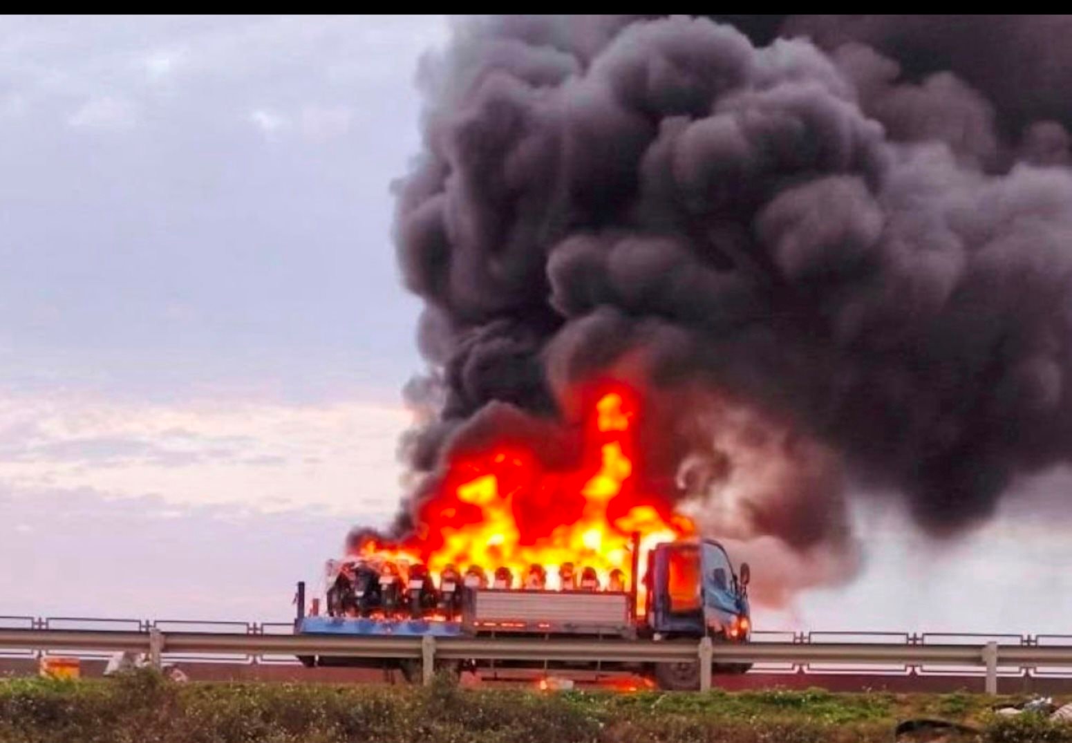 Chiếc xe tải cháy dữ dội trên cao tốc.