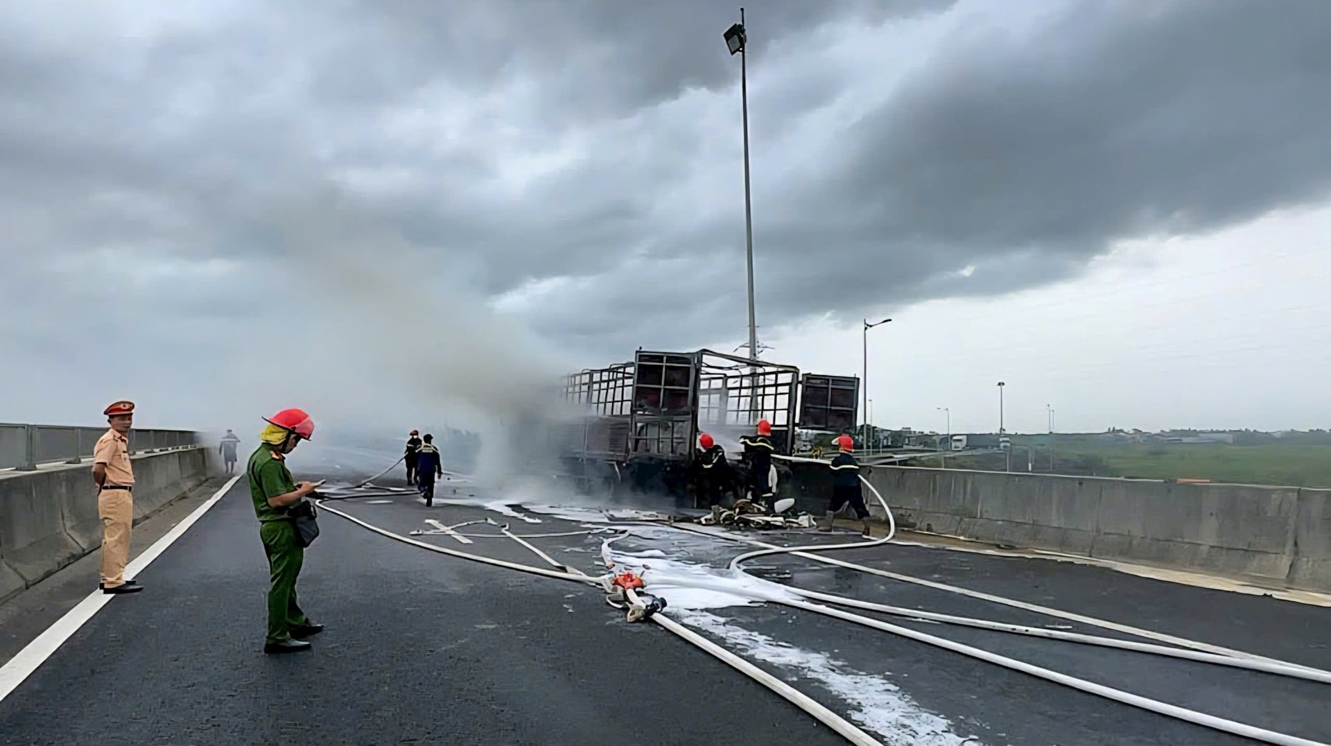 Ngay khi nhận tin báo, lực lượng Cảnh sát giao thông và Đội vận hành tuyến cao tốc đã nhanh chóng có mặt tại hiện trường, tổ chức phân luồng phương tiện, đảm bảo an toàn giao thông và hướng dẫn các xe lưu thông qua Trạm thu phí Phong Thử.