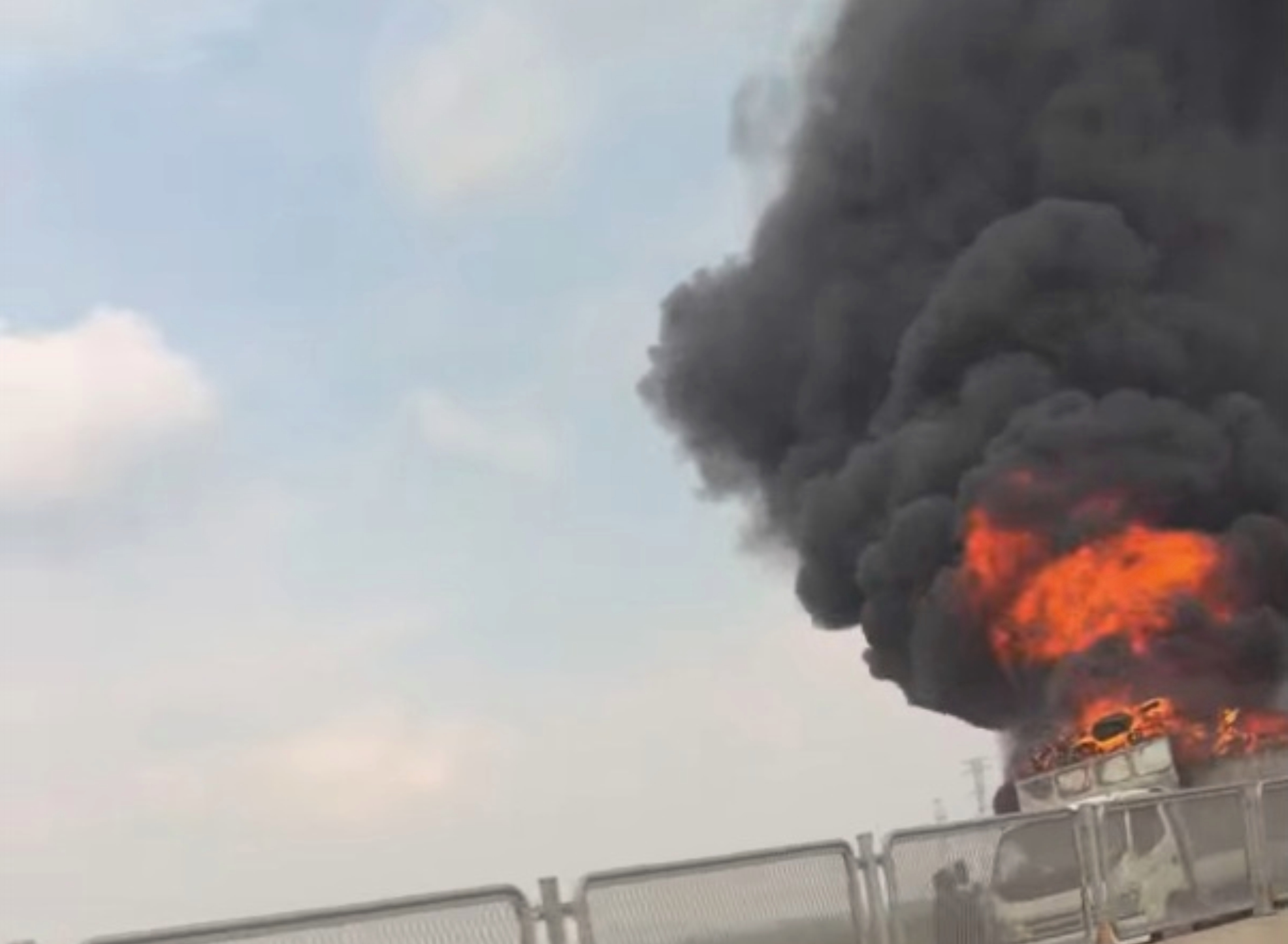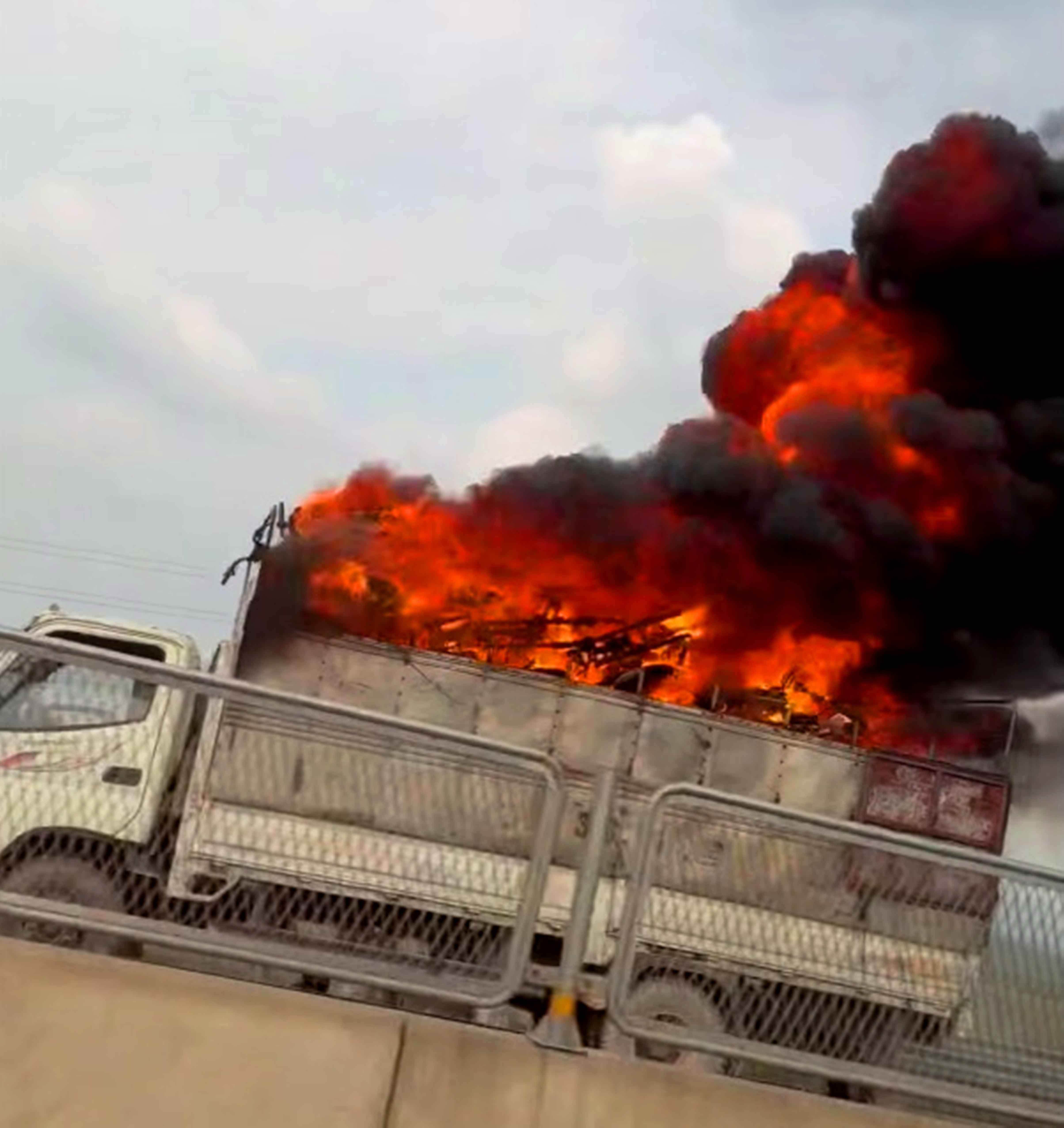 Ngọn lửa bốc cháy, bao trùm xe tải tại hiện trường