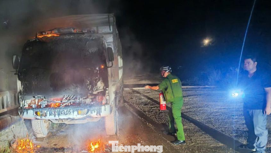 Khoảng 3 giờ 40 phút, lực lượng Công an tỉnh Cao Bằng nhận được tin báo của người dân về vụ cháy phần đầu một xe tải tại khu vực cầu Cứng Tân An.
