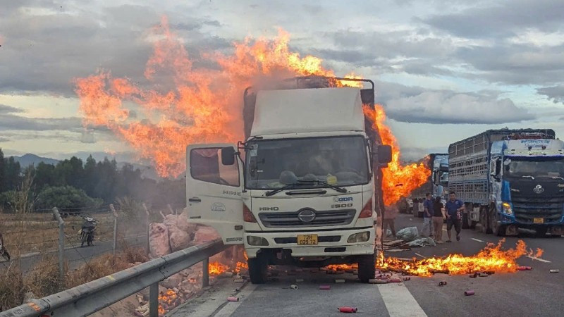 Khoảng 17 giờ cùng ngày, chiếc xe tải mang biển số 72H-029.72 đang lưu thông trên cao tốc Vĩnh Hảo-Phan Thiết, theo hướng bắc-nam. Khi đến Km176 (đoạn qua xã Lương Sơn), tài xế phát hiện có lửa bốc cháy từ phía sau thùng xe.