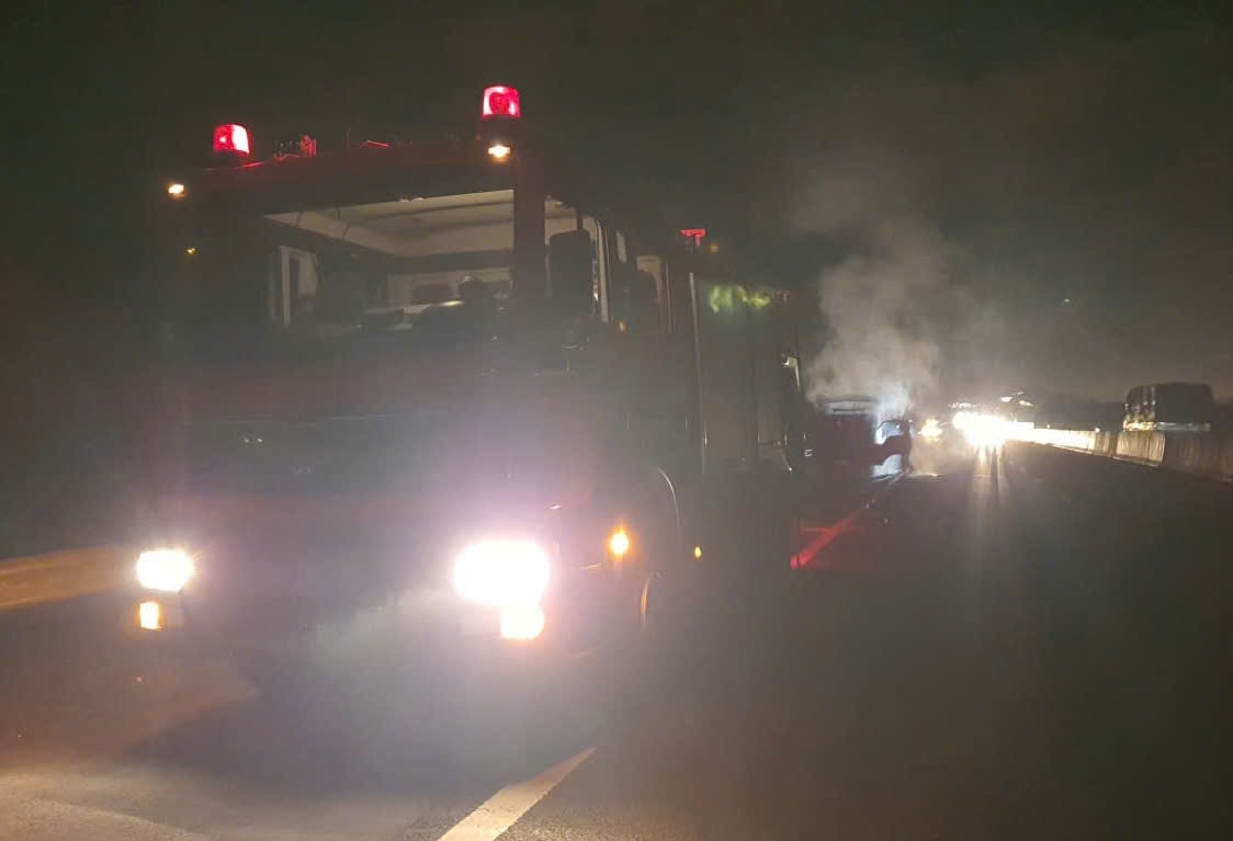 Thời điểm trên, xe tải biển số 86C-048.xx lưu thông hướng Bắc - Nam. Khi đến Km23, ngọn lửa bất ngờ bốc lên dữ dội từ phần thùng xe - nơi đang chứa nhiều vật liệu dễ cháy. Tài xế nhanh chóng dừng xe và tiến hành dập lửa.