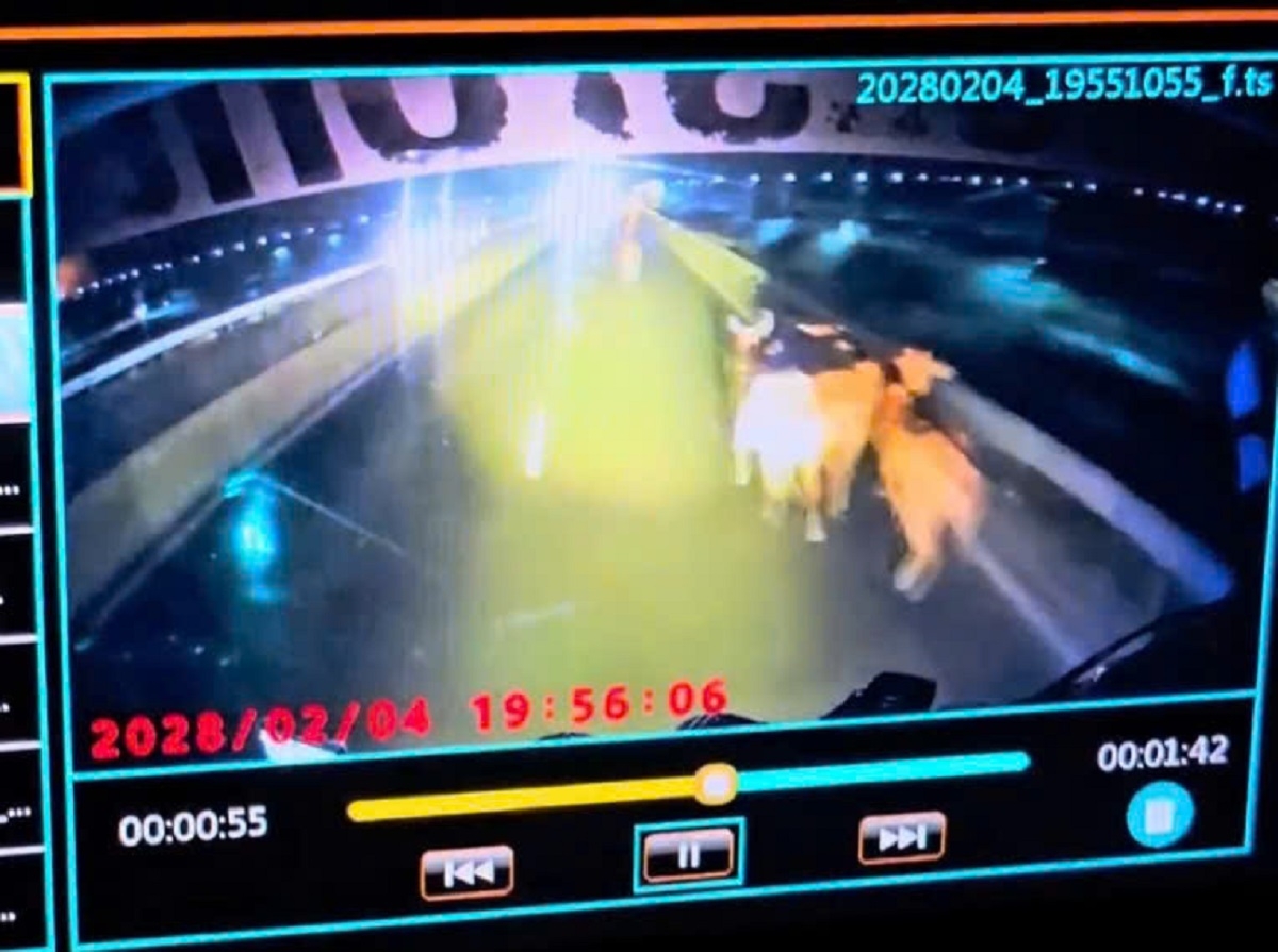 Đoạn clip ghi lại hình ảnh đàn bò chạy tán loạn trên cao tốc. Clip: MXH