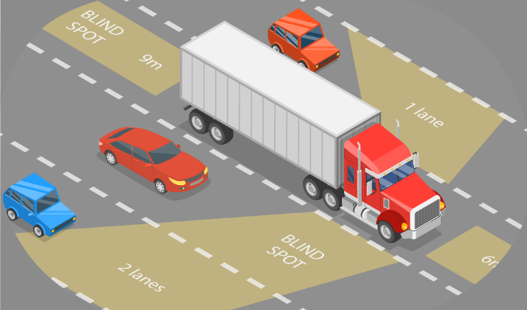 Các vị trí điểm mù của xe tải. Ảnh minh họa: Car and Driver