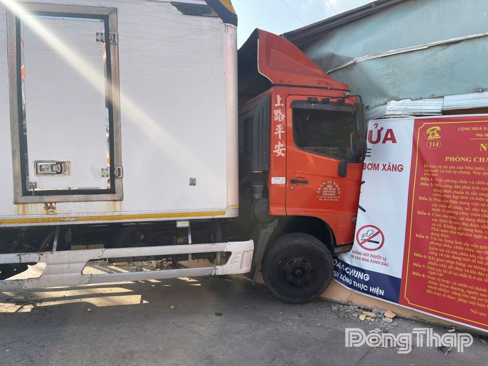Chủ nhân của căn nhà trên cho biết vào thời điểm trên chị đang ngồi ở phía trước nhà, sau đó vừa đi vào phía bên trong nhà thì chiếc xe tải tông vào khiến mảng tường đổ sập xuống.