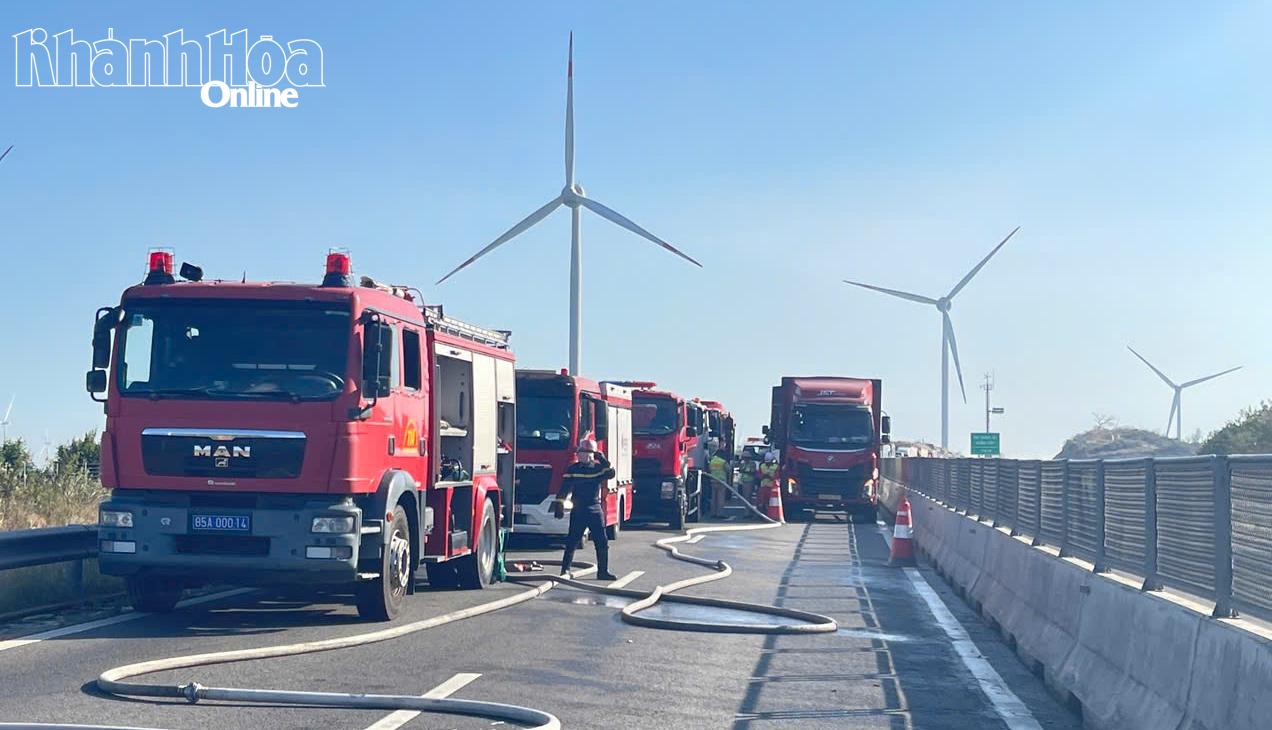 Gần 15 giờ ngày 28-3, trên tuyến đường bộ cao tốc đoạn Cam Lâm - Vĩnh Hảo, xe tải biển số 34H-039.26 do tài xế Vũ Thanh Tâm (trú tại TP. Hải Phòng) điều khiển chở máy móc nông nghiệp (gồm: 3 xe nâng, 2 máy cày, 1 máy tiện, 2 động cơ xe nâng, 1.000 can nhựa) đang lưu hành hướng nam - bắc, khi đến gần nút giao Du Long, đoạn qua xã Thuận Bắc bất ngờ bốc cháy.