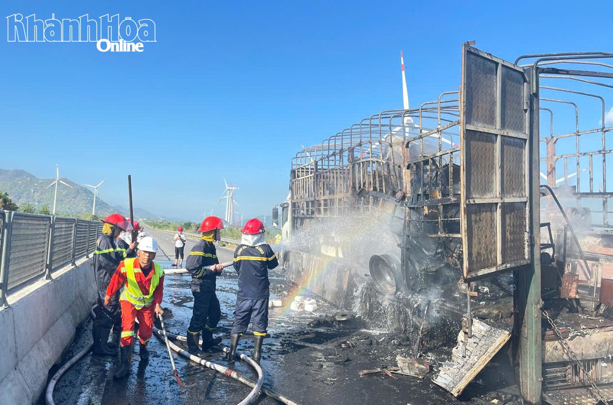 Nhận được tin báo, lực lượng Cảnh sát Phòng cháy, chữa cháy và Cứu nạn, cứu hộ - Công an tỉnh Khánh Hòa đã điều động xe chữa cháy, xe bồn cùng các cán bộ, chiến sĩ đến hiện trường, phối hợp lực lượng liên quan dập lửa. Đến khoảng 16 giờ, đám cháy được dập tắt hoàn toàn.