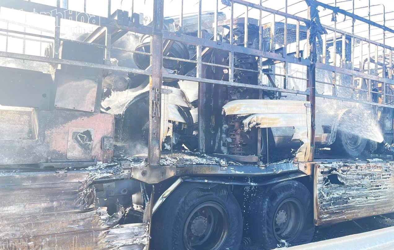 Nhiều thiết bị máy móc trên thùng xe bị ngọn lửa thiêu rụi.