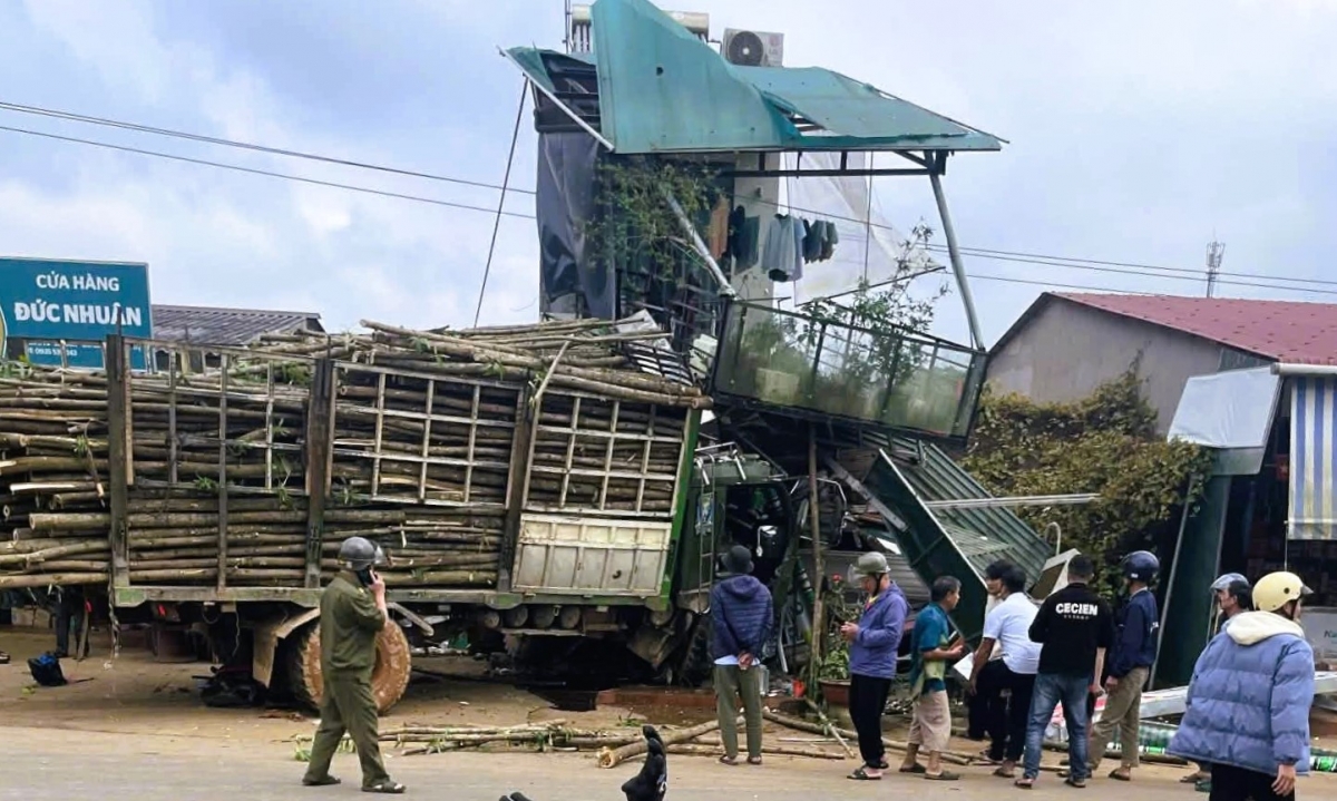 Khoảng 11h trưa 28/12, xe tải 74C-109.11 chở cây keo tràm lưu thông trên Tỉnh lộ 575, hướng từ đường Hồ Chí Minh đi Quốc lộ 1A. Khi đến ngã tư giao với Tỉnh lộ 576, xe tải bất ngờ va chạm với một xe máy, sau đó mất lái và lao thẳng vào nhà dân ven đường.