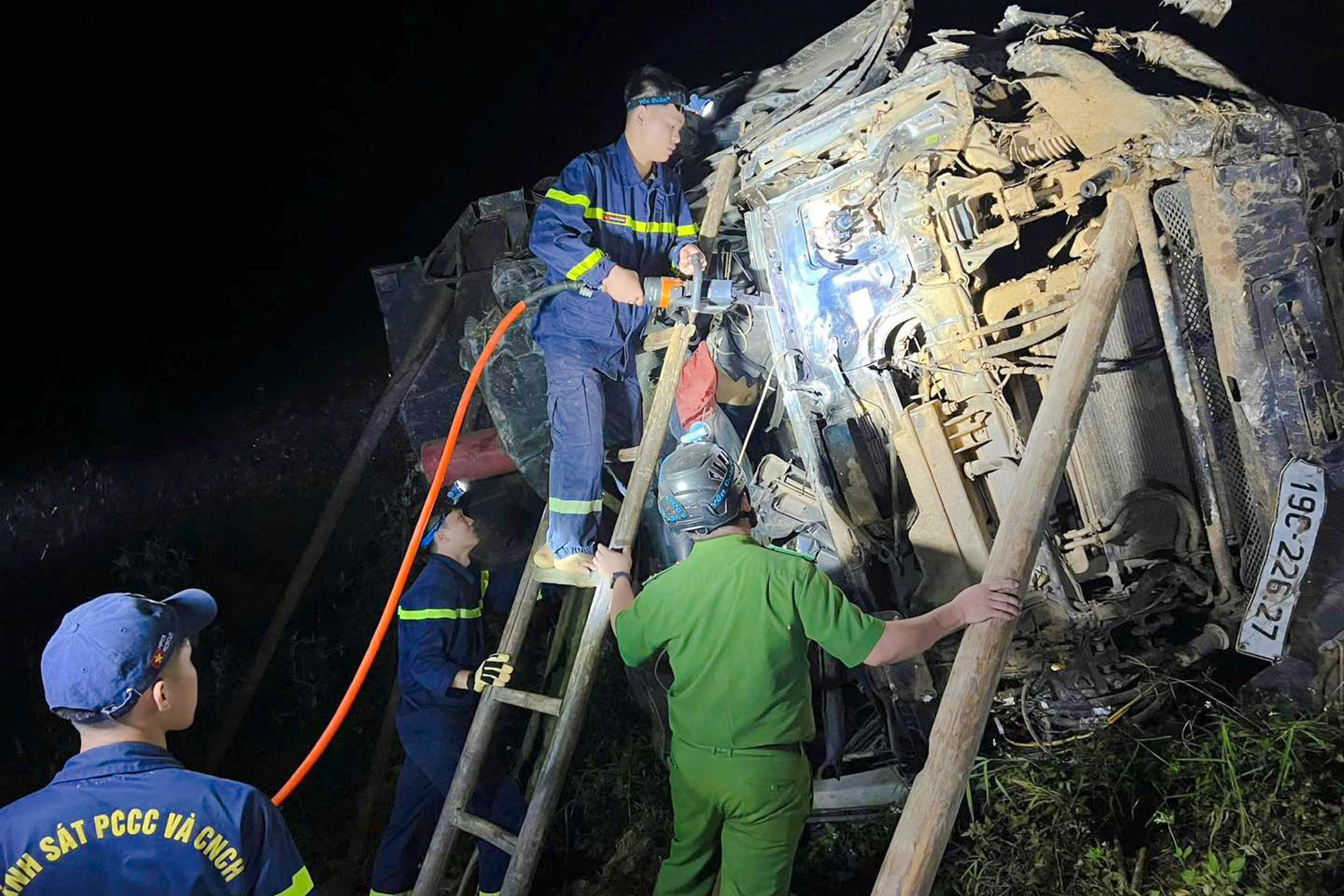 Trước tình huống khẩn cấp, lực lượng chức năng nhanh chóng triển khai phương án cứu hộ tại chỗ. Trong điều kiện ánh sáng hạn chế và địa hình phức tạp, các cán bộ, chiến sĩ sử dụng thiết bị cắt, tách thủy lực để xử lý phần cabin bị biến dạng, từng bước tiếp cận nạn nhân.