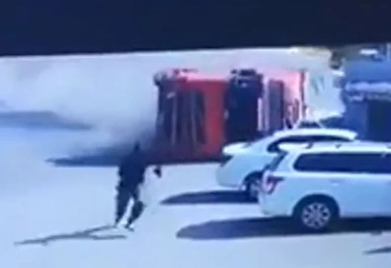 - Video: Xe tải mất lái lật nghiêng giữa phố, nhiều người tháo chạy trong hoảng loạn. Nguồn: Người đưa tin.