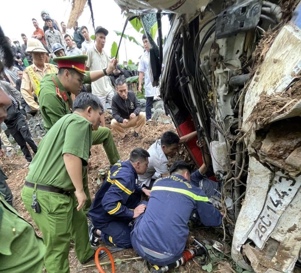 Công an tỉnh Phú Thọ kịp thời cứu người mắc kẹt trong xe tải gặp nạn trên dốc Cun. Ảnh: Công an Phú Thọ