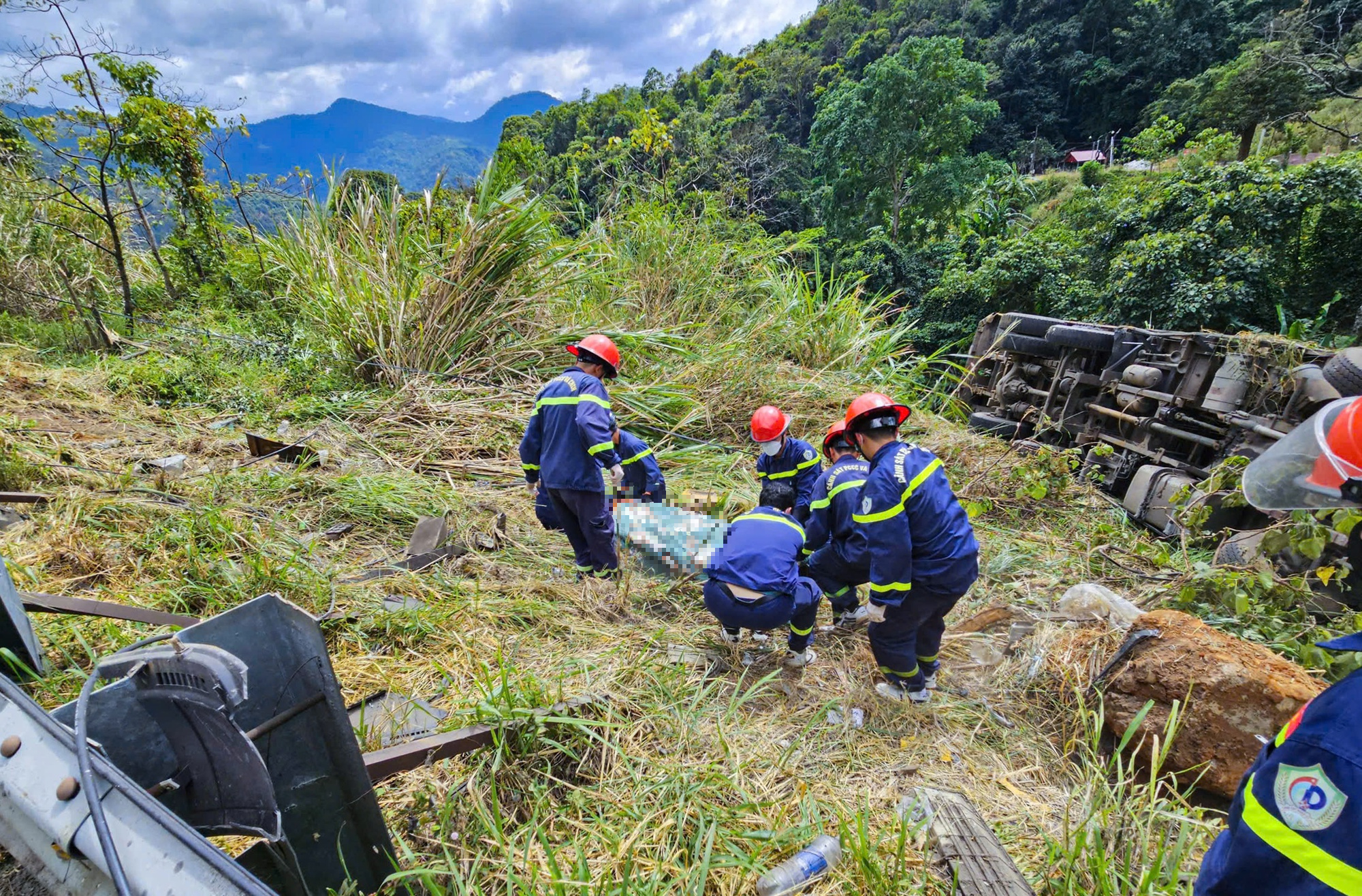 Vụ tai nạn làm tài xế L.H.T tử vong, mắc kẹt trong cabin; phụ xe L.V.T bị thương nặng, được người dân đưa đi cấp cứu tại Bệnh viện II Lâm Đồng.