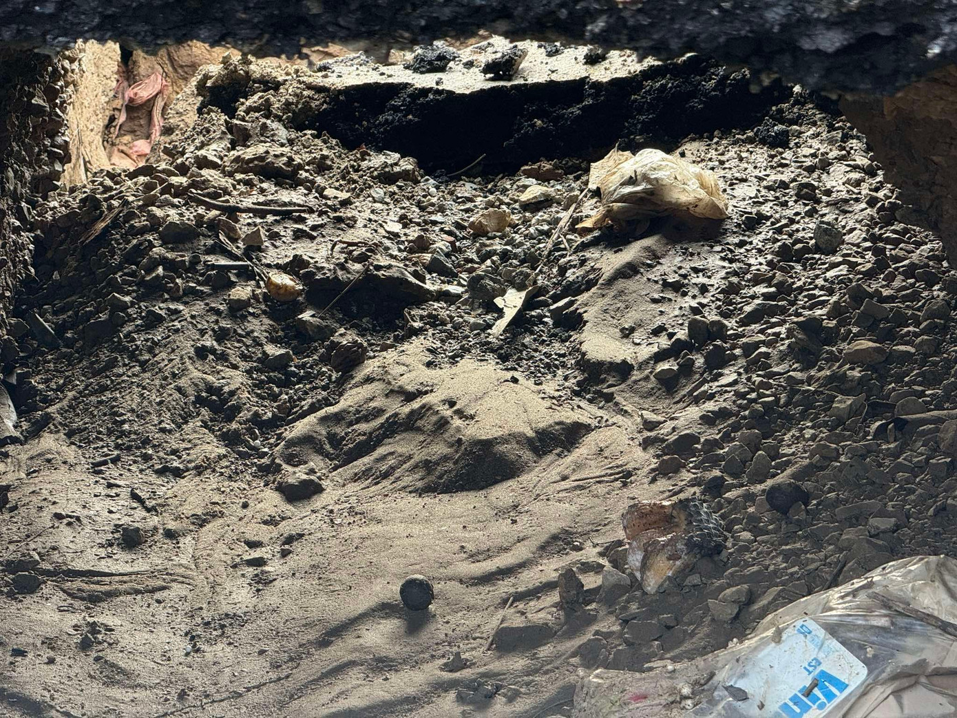 Một phần bánh xe ở dưới hố.
