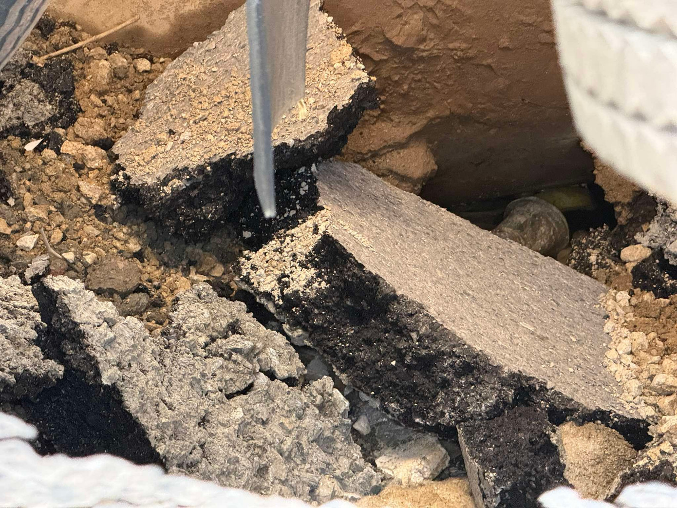 Mặt đường sụp xuống khoảng hơn 1 mét.