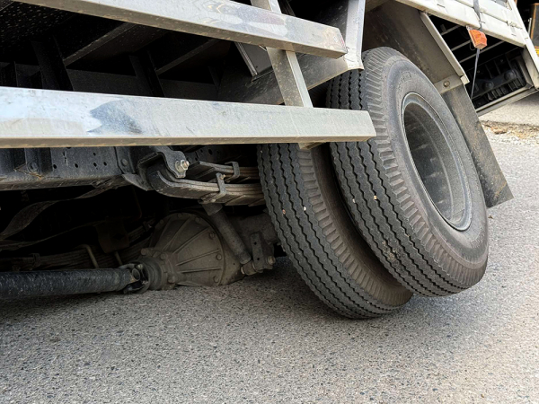 Bánh sau bên phải của xe tải nằm dưới hố.