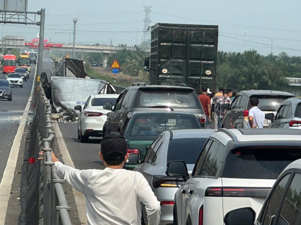 Vụ tai nạn khiến cao tốc Trung Lương - Mỹ Thuận ùn ứ kéo dài. Ảnh: MINH