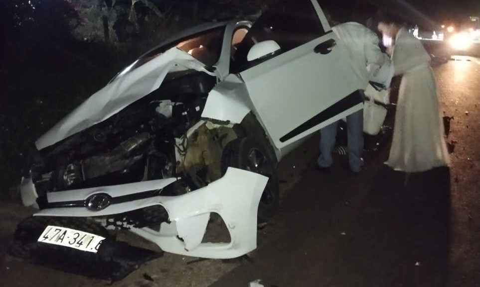 Một ô tô bị tông hư hỏng nặng. Ảnh: H.D