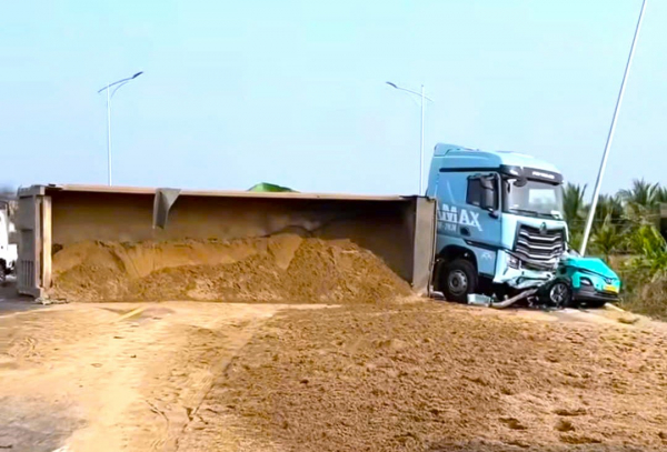 Theo thông tin, vào khoảng 4h12 rạng sáng 24/4, xe tải chở cát mang BKS 29E-219.24 do tài xế Phạm Thương Tâm (SN 1991, trú tại thôn 5, xã Ea Na, tỉnh Đắk Lắk) điều khiển lưu thông trên đường tránh Đông Buôn Ma Thuột theo hướng từ xã Ea Ktur đi xã Hòa Phú.