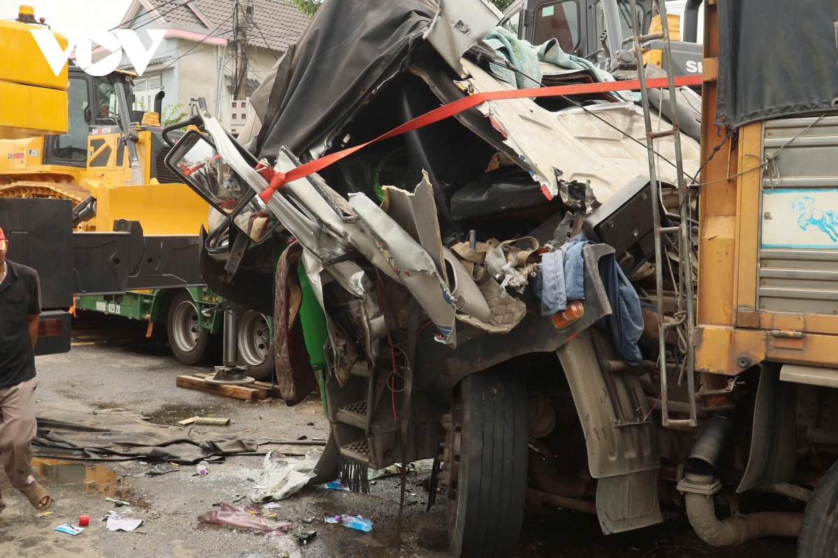 Đầu xe tải hư hỏng nặng.