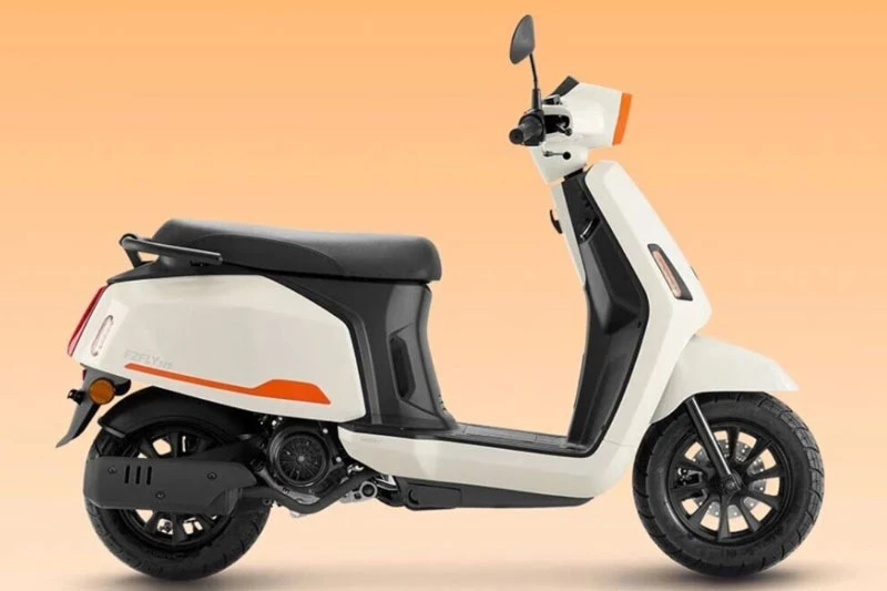 Hai bên thân xe có đường kẻ ngang tạo cảm giác thân xe dày dặn hơn, trong khi mâm đa chấu màu bạc và gương tròn cổ điển nhấn mạnh vẻ thanh lịch đặc trưng của xe châu Âu. Fenezhi FZFLY 125 2026 có 4 tùy chọn màu sắc nổi bật gồm Meteorite Gray, Matte Black, Ice White và Matte Orange.