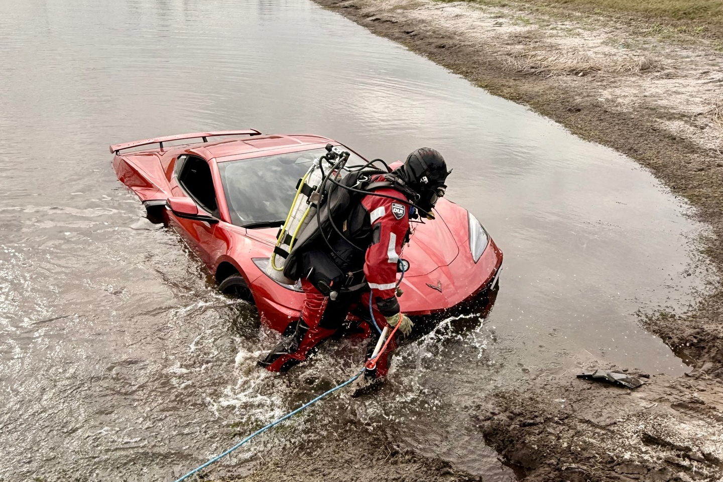 Lực lượng cứu hỏa thành phố Orlando đã trục vớt thành công một chiếc Chevrolet Corvette C8 vào sáng 14/1, sau khi phát hiện phương tiện này nằm trong một vũng nước nông gần sân bay quốc tế Orlando, bang Florida (Mỹ).