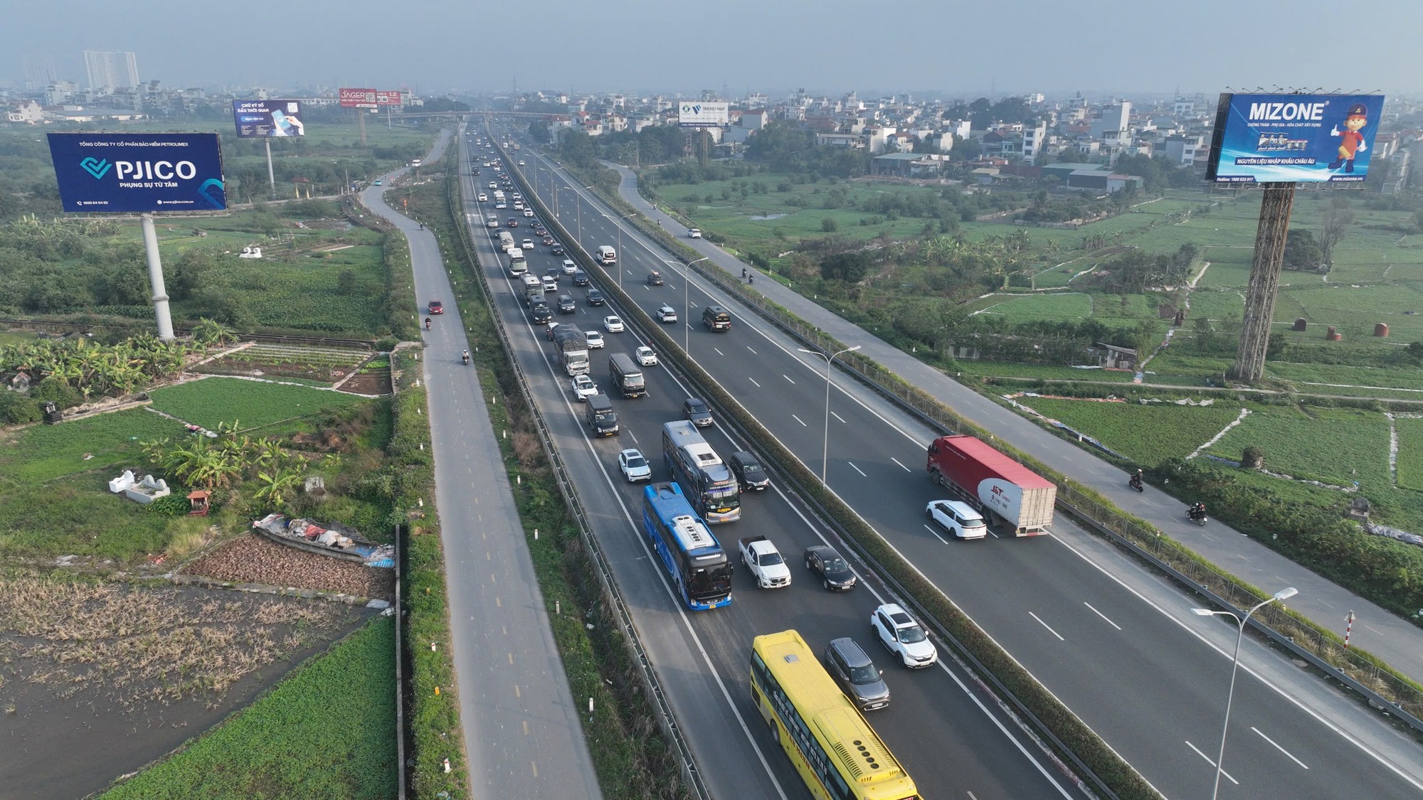 Lưu lượng phương tiện trên tuyến cao tốc Pháp Vân - Cầu Giẽ tăng nhanh từ sáng sớm ngày 1/1/2026.